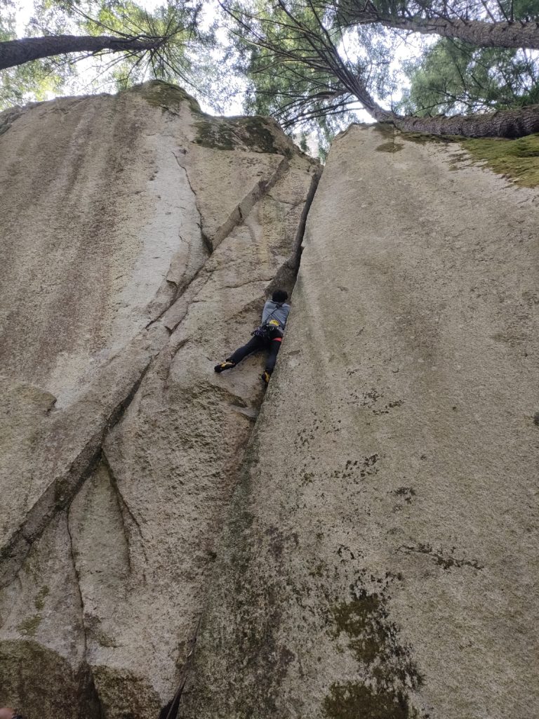 ムーブとプロテクションの確認でトップロープでトライ。おおむねつながったかな。でも降りてきたら忘れてる部分も。次は思い切って落ちるトライをしてみるか。