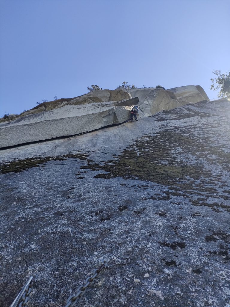 レイバック地獄はここからはじまる。グイグイと高度をあげられるがプロテクションせって含めタフなピッチ。もっとタフなのは終了点に蜂の巣があって蜂の猛攻を受けたということ。5〜6箇所刺されて、アナフィラキシーになったらどうしようとまじで心配した。