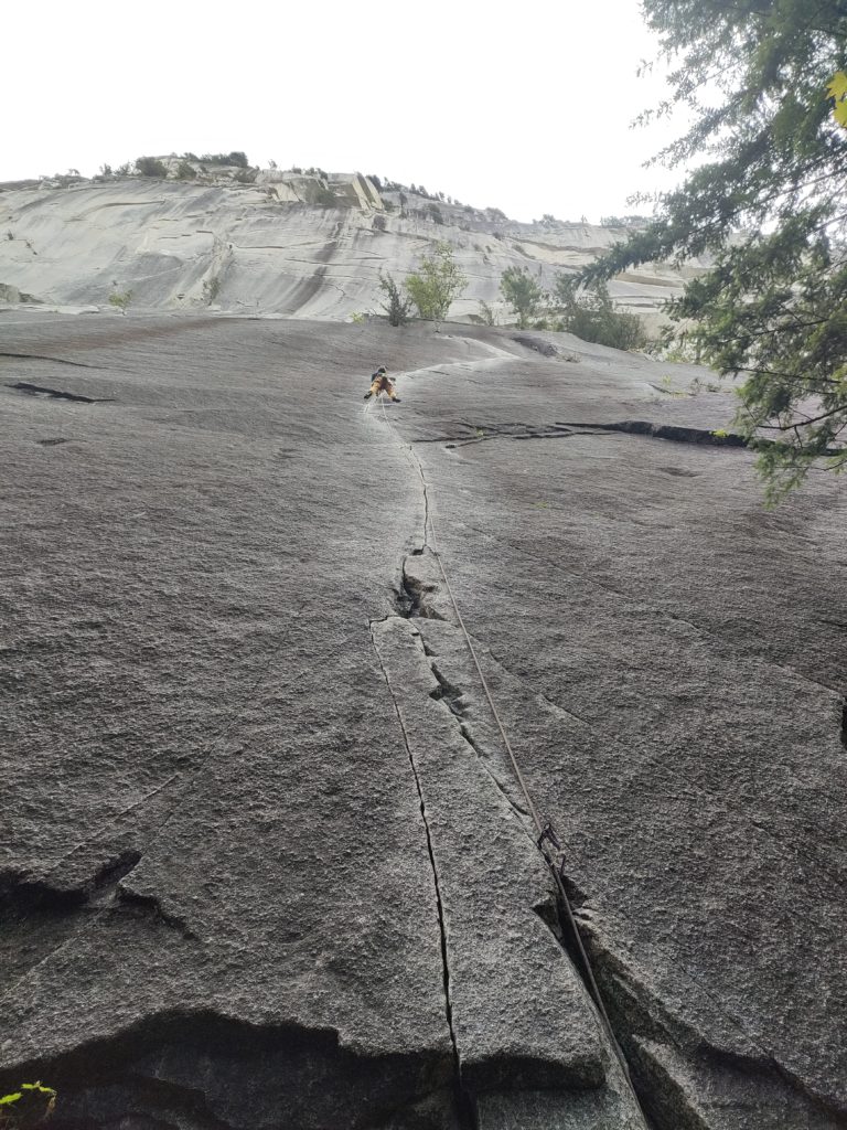 合間に見た目の綺麗なクラック。ただ出だしはカムを受け付けない、フレアクラック&シンクラックでプロテクションの怖さにテンション。テンションで核心を抜け、その後は快適フィンガー。とても良い。最後はワンムーブあり長さもあって日本にあれば間違いなく四つ星。